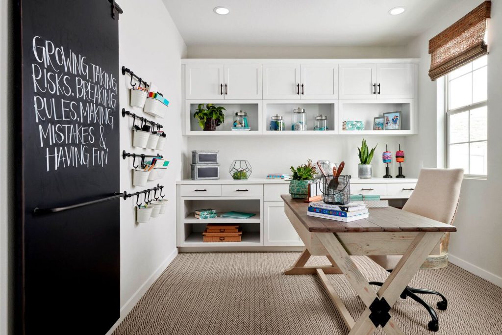 Transform your home into a sanctuary. Need a creativity boost? Use palettes with a focus on hues of green. If you’re looking for help calming down, blues are the way to go. Home Depot and Lowe’s (and the three Newport Beach Crown Ace Hardware stores) are still open, so take advantage of extra time in your day and paint a wall in your office, extra room, or wherever you are setting up shop to give it a fresh look. (Photo: Ivy at The Preserve by TRI Pointe Homes)