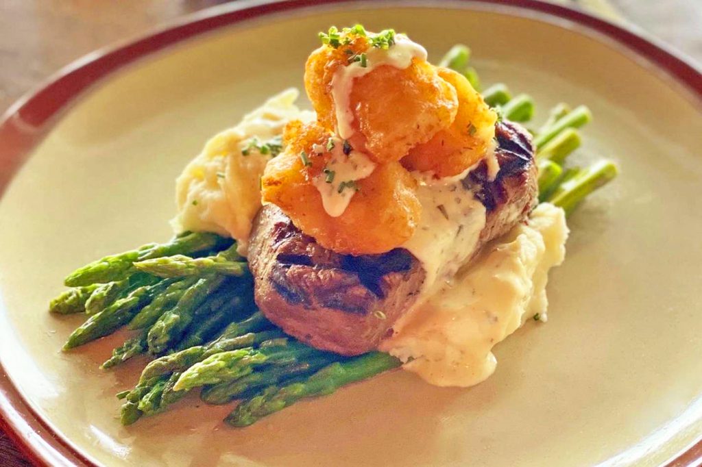 The New Year’s Eve menu includes such items as Maine Lobster & White Corn Bisque with Smoked Paprika and Parmesan Croustade, Seared Day Boat Scallops with Creamy Sweet Corn Polenta, Holiday Meatballs made with Prime Wagyu Beef in Cranberry-Chipotle Sauce, Crispy Roasted Half Pekin Duckling with Cornbread & Pine Nut Stuffing, and Surf & Turf Filet Mignon with Lobster Beignets.